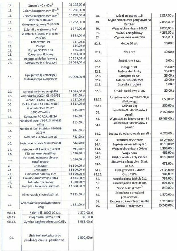 Syndyk sprzeda wyposażenie warsztatu i laboratorium